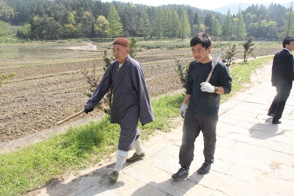 真如禅寺正在种菜的僧人(中国台湾网记者 芜同 摄)