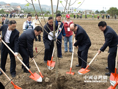 两岸嘉宾共同种下“同心树”。(中国台湾网 高斯斯 摄)