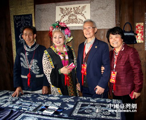 两岸嘉宾与枫香染传承人合影留念。(中国台湾网 高斯斯 摄)