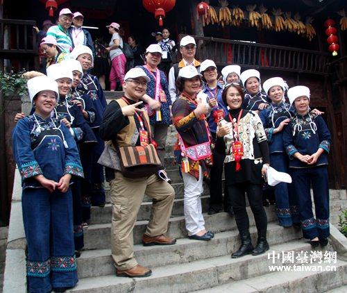 台湾少数民族嘉宾与布依族村民合影留念。(中国台湾网 高斯斯 摄)