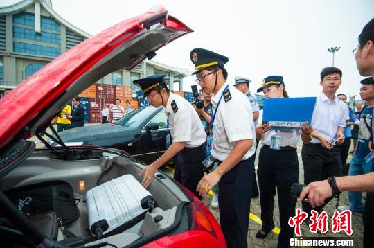 海关、检验检疫、交通等多部门联合过检。(念望舒摄) 念望舒 摄