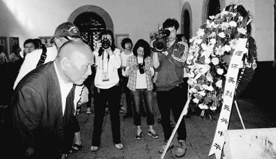 黄埔军校第18期学生、黄埔同学会会长林上元走进位于衡山的“南岳忠烈祠”,先向抗日英烈鞠躬致敬。人民日报 陈晓星摄