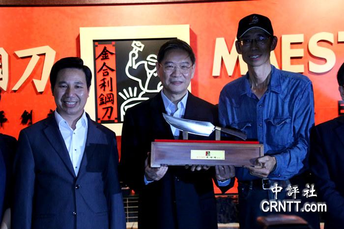 张志军获赠现场打造的钢刀---勇士刀(中评社 林艳摄)