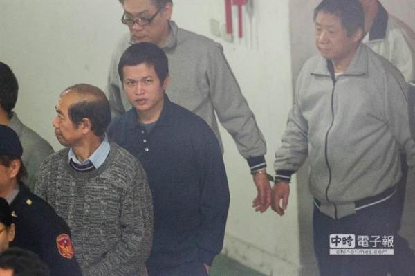 台北地检署押送1其所抓获的共谍,左一为退役少将许乃权,台湾称右一为解放军上尉镇小江