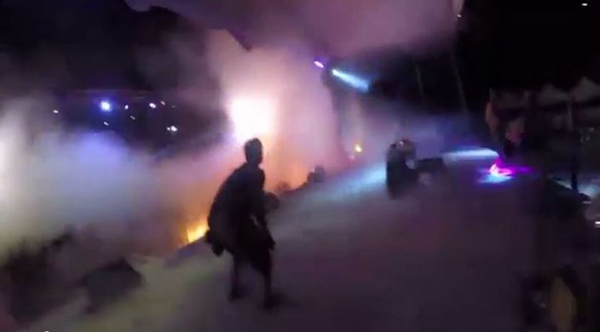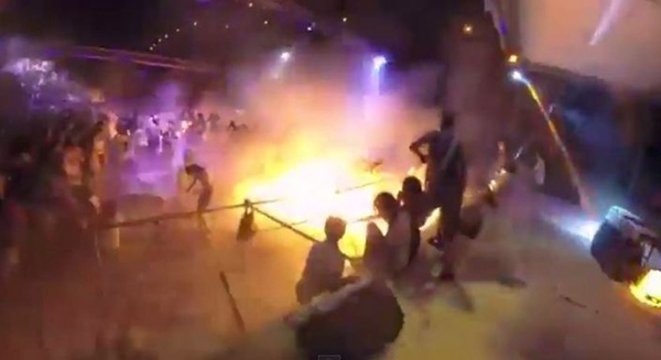 最新曝光的片段在舞台上拍摄,舞台工作人员当时用二氧化碳高压气体,将堆放在舞台前方的彩粉喷向台下观众,彩色粉末在舞台前方飞散,大批民众还沉浸在摇滚乐中,但当工作人员在喷第3次时,舞台右上方突然冒出红色火光,火势向右前方观众燃烧。