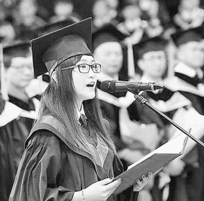 优秀陆生代表在毕业典礼上演讲。资料图片