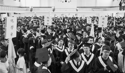 6月13日,台湾新北市淡江大学举行毕业典礼,各个系的毕业生在集结。(资料图片)