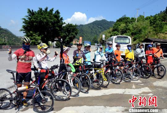 7月26日,13名来自台湾及香港的单车手在福州市闽侯县竹岐乡火炬村启程,开始丝绸之路中国大陆段8000余公里的骑行。 刘可耕 摄