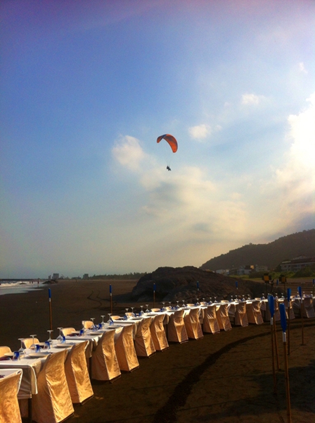 乘飞行伞飞翔到海滩,赴海天盛宴。(何自力 摄)
