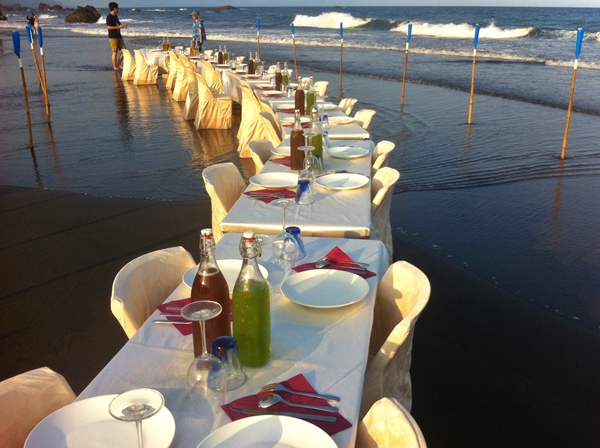 主办单位特別推出了“幸福餐桌”晚宴。晚宴的地点就在宜兰礁溪的海滩上,用餐时,游客眼前是蔚蓝的太平洋及龟山岛,吹着太平洋徐徐的海风,脚踩细软的沙滩,被海水拥抱,在摇曳的烛光下,享用宜兰在地农夫用心培育的海陆食材,举杯邀月,把酒言欢。(何自力 李慧颖 郭丽琨)