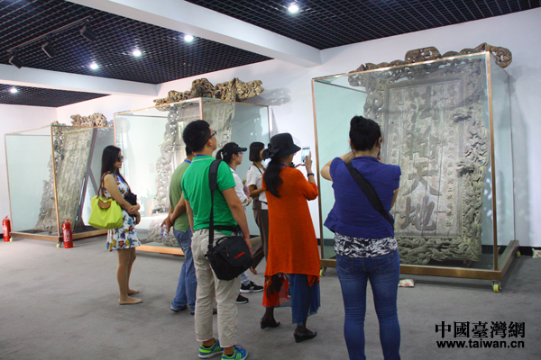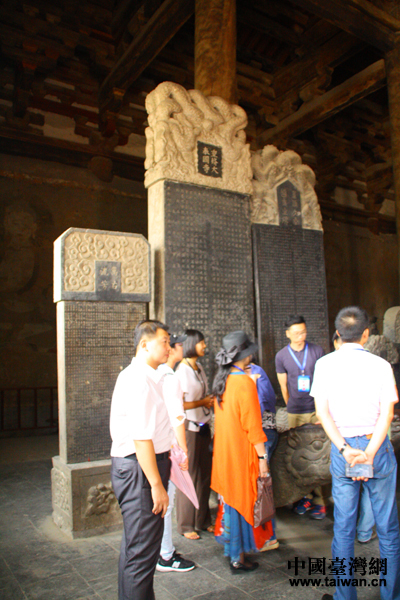 8月18日,“第14届辽宁台湾周”在锦州市拉开帷幕。图为参会台湾嘉宾参观锦州义县奉国寺内石碑。(中国台湾网 王怡然 摄)