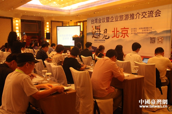 中国台湾网8月21日北京讯 (记者 黄露佳)8月21日,台湾贸易中心在北京中国大饭店举行“台湾会议暨企业旅游推介交流会”,近百位相关业者及企业代表参与,洽谈会场热络非凡。