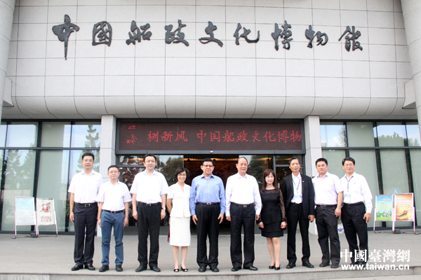 24日下午,海协会会长陈德铭夫妇与海基会董事长林中森夫妇一起在福州马尾参观了中国船政文化博物馆,图为一行人在博物馆门口合影留念。(中国台湾网 张洁 摄)