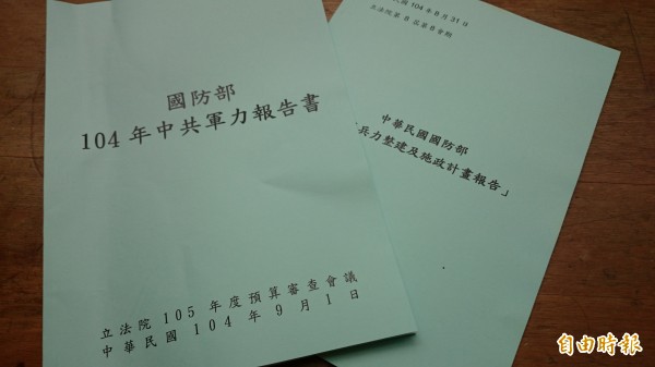 台湾“国防部”8月31日向“立法院”递交的“2015年中共军力报告书”