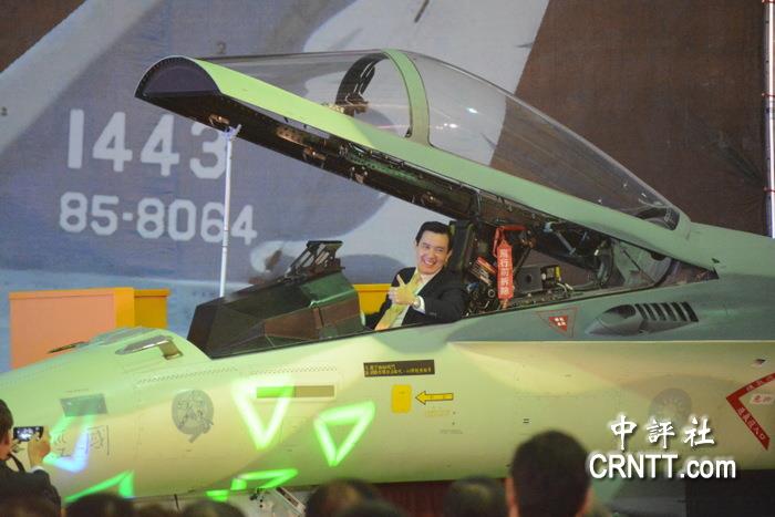 马英九在典礼茶会中,亲自坐上经国号战机驾驶舱,为新换装的各项系统功能竖起了大姆指。他还特别举出经国号换装的武器系统,增了“万剑导弹”,与美军现役AGM-154联合遥攻武器(JSOW)相同,此外,对飞行员也增加了安全保障。图为马英九坐上换装后的经国号战机,一边挥手、一边竖起大姆指比赞。
