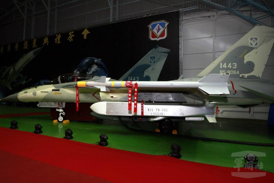 据台湾联合新闻网报道:台湾“空军”16日在台南举行“翔展项目接机典礼”,由马英九亲自主持,主要展示台湾自行研发的“万剑远距精确攻击武器系统”(防区外武器)。