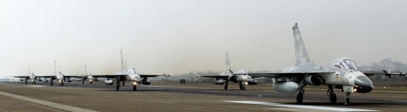 据报道,台湾“空军”台南443联队有71架IDF战机完成“翔展一号”换装计划,16日,马英九到场检阅IDF、F-16战机空中分列式与地面部队及装备,典礼上台空军还展示翔展战机单机飞行性能。