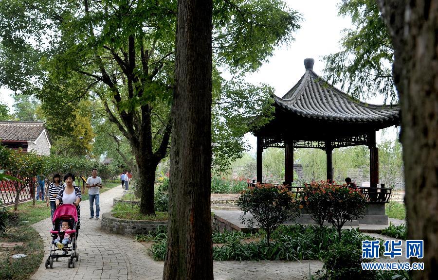 9月19日,游人从盘亭旁走过。“盘亭”是刘铭传专为陈列国宝“虢季子白盘”特地建造的。位于“钢叉楼”的后面,它四面环水,只有一座石桥可以相通。1950年元月,刘铭传的曾孙刘肃曾先生亲自护盘进京,将“虢季子白盘”献给国家。从此,这件“虢季子白盘”一直珍藏在中国历史博物馆。新华社记者 陶明 摄