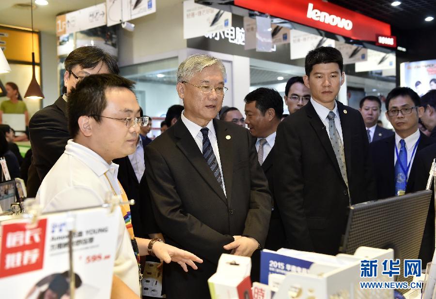 10月14日,夏立言一行在广州一家台资企业参访。 10月14日,台湾方面陆委会主委夏立言在广州拜谒黄花岗七十二烈士墓,参观孙中山大元帅府纪念馆、中山大学,参访广州台资企业。 新华社记者梁旭 摄