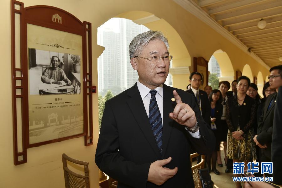 10月14日,夏立言在广州孙中山大元帅府纪念馆接受媒体采访。 10月14日,台湾方面陆委会主委夏立言在广州拜谒黄花岗七十二烈士墓,参观孙中山大元帅府纪念馆、中山大学,参访广州台资企业。 新华社记者梁旭 摄
