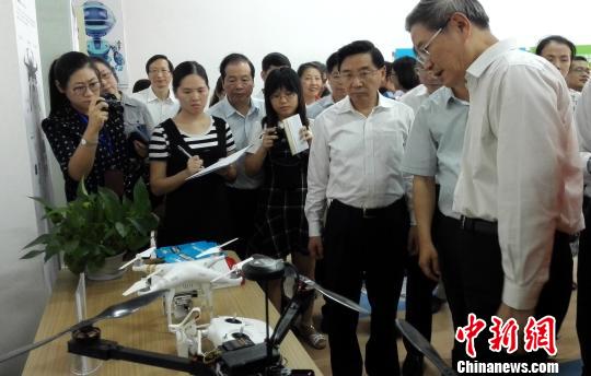 张志军观看两岸青年创业基地无人机。 杨伏山 摄