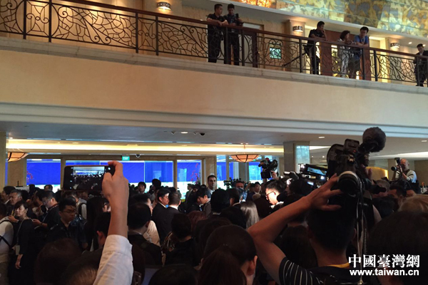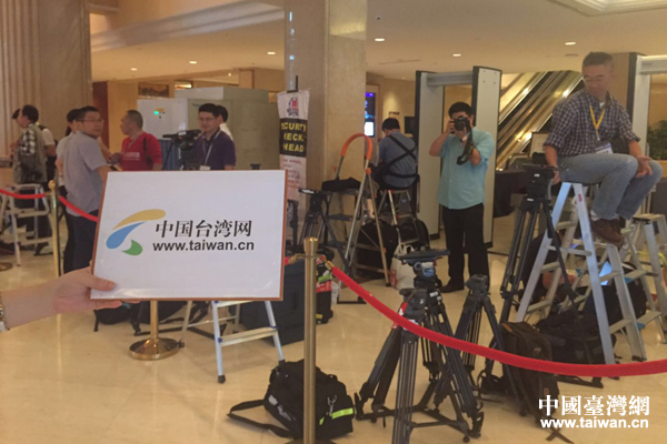 两岸领导人会面还未开始,记者们就早早地“抢占”有利位置。(中国台湾网 张洁 摄)