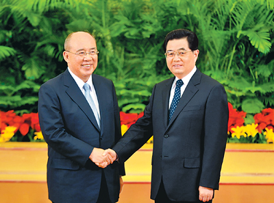 2008年5月28日,中共中央总书记胡锦涛在北京会见中国国民党主席吴伯雄和他率领的中国国民党大陆访问团全体成员。胡锦涛强调,在国共两党和两岸同胞共同努力下,台湾局势发生了积极变化,两岸关系发展面临着难得的历史机遇。这一局面来之不易,值得倍加珍惜。希望国共两党和两岸双方共同努力,建立互信、搁置争议、求同存异、共创双赢,继续依循并切实落实“两岸和平发展共同愿景”,以富有成效的努力,扎扎实实推动两岸关系不断取得实际进展,增强广大台湾同胞对两岸关系和平发展的信心。
