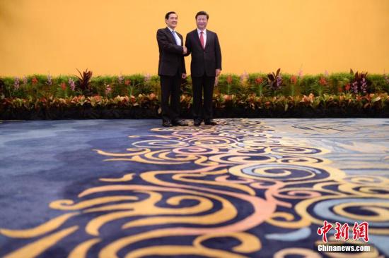 11月7日下午,两岸领导人习近平与马英九在新加坡香格里拉酒店历史性会面。 中新社记者 廖攀 摄