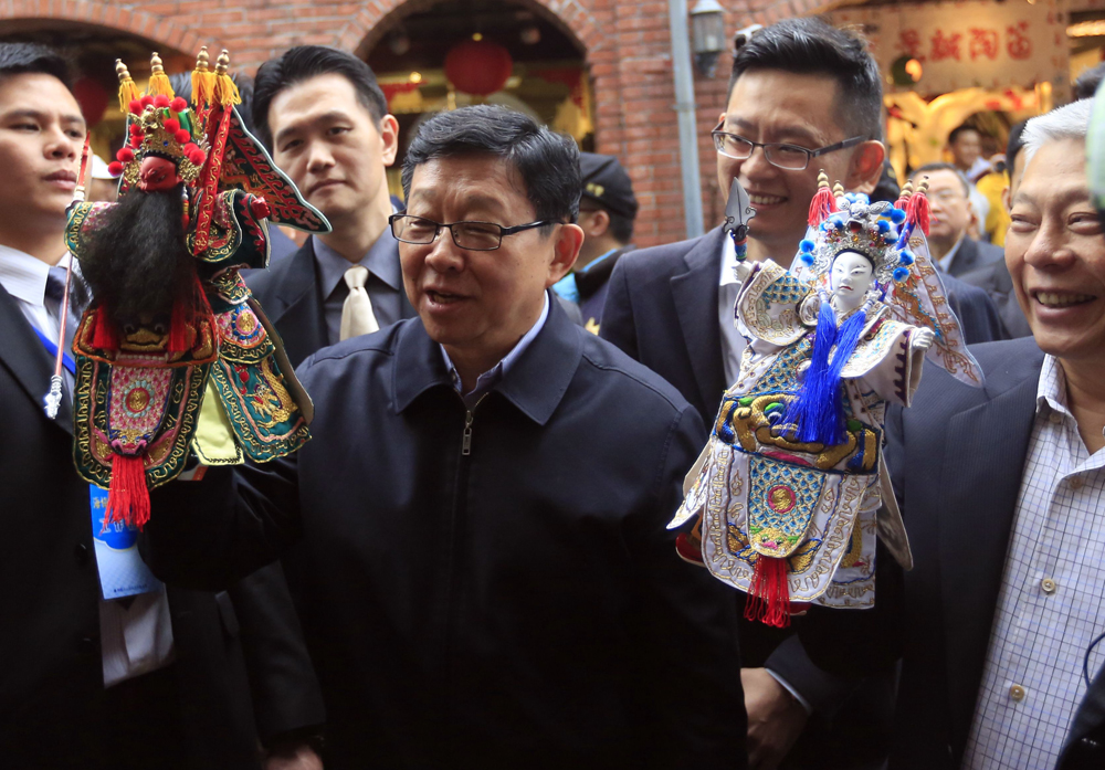 海协会会长陈德铭一行3日前往台湾宜兰,参访传统艺术中心,体验布袋戏等传统文化。