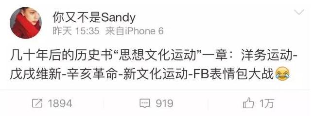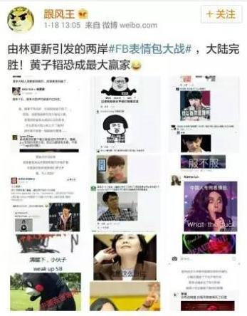 而由于方式是大家通过发“图片表情”互呛,于是这场大战不仅充满了诙谐和乐趣,还有了一个很形象的名字:“FB表情包大战”。