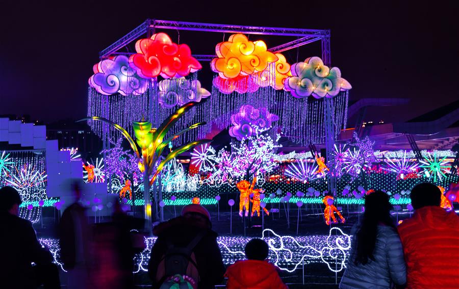 2月19日,游客在台北元宵灯会上观赏花灯。元宵节将至,以“福禄猴”为主题灯的台北元宵灯会亮灯,千姿百态、情趣盎然的花灯吸引了众多市民和游客前来观赏。 新华社记者 张国俊 摄