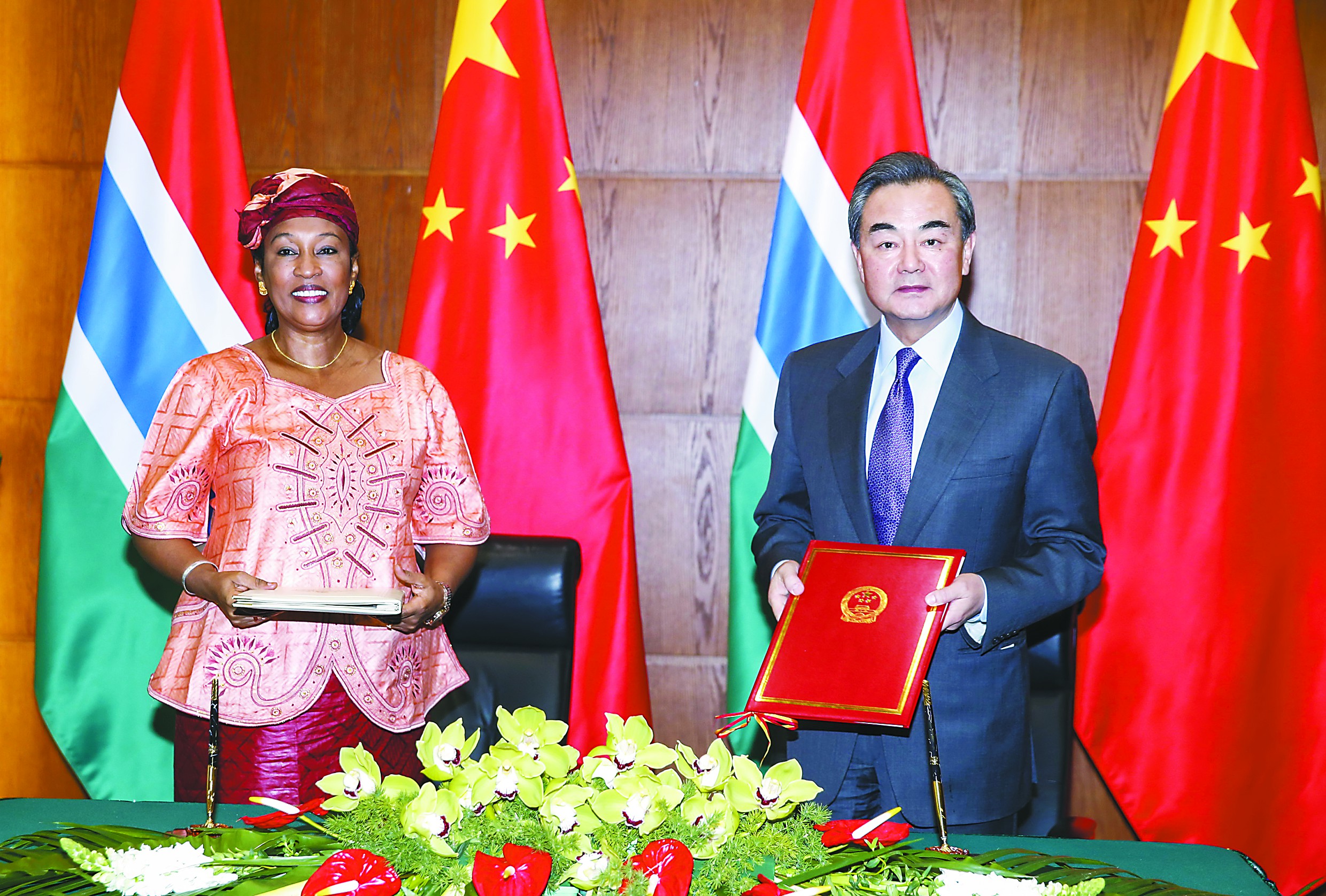 17日,中国外交部长王毅与冈比亚外长盖伊在北京签署联合公报,宣布两国恢复大使级外交关系。