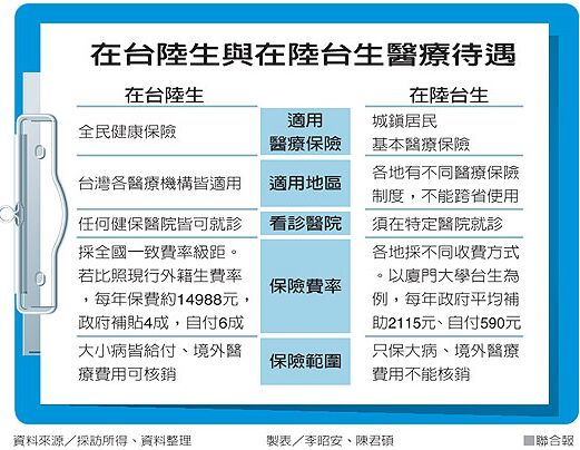 岛内自2011年开放陆生赴台读书以来,迟迟未能将陆生纳入健保。而较之于此,在台读书超过4个月的侨生与外籍学生却都可以参加健保。