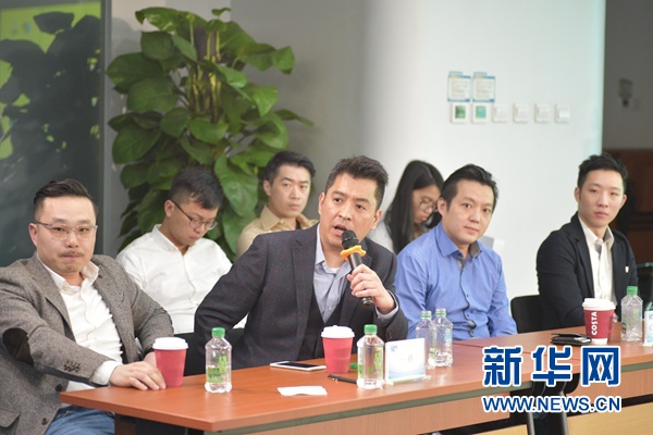 张扬正在新华网举办的“台港澳青年创客分享会”上分享创业经历。