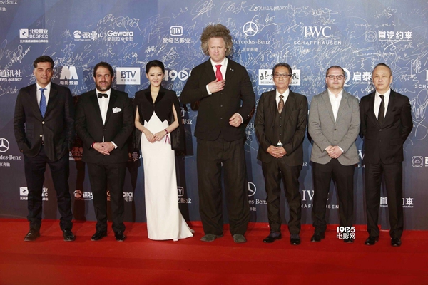 本届北影节“天坛奖”评委亮相红毯,右一为香港导演陈德森。