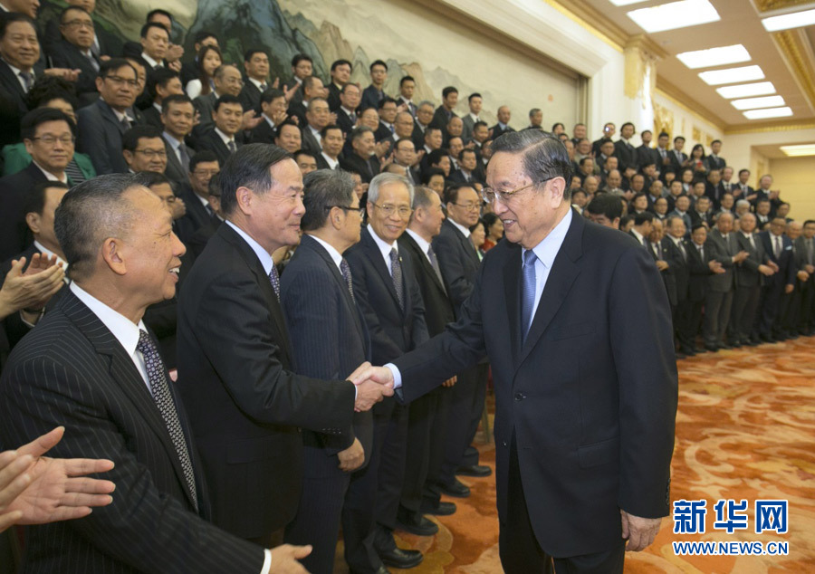 中共中央政治局常委、全国政协主席俞正声25日在人民大会堂会见了参加全国台湾同胞投资企业联谊会第四届会员代表大会的代表。