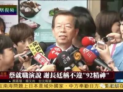 谢长廷怎么说的?“民进党不承认‘九二共识’这4个字,但承认1992年有会议,‘但是我们没有认为有达成‘一中各表’或是‘一中’的‘九二共识’,这个我们并不承认。”虽然这只是回答他的个人见解,但他“现在是执行台湾地区领导人当选人蔡英文的政策。”