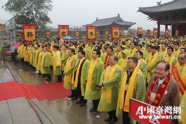 两岸同胞在炎帝陵冒雨祭拜炎帝。(中国台湾网 李学磊 摄)