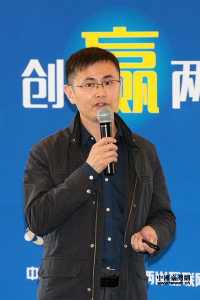 在昨日举行的两岸青创产业园区发展研讨会上,复客中国昆山两岸青创园总经理卓强在分享两岸创业园区成功经验。(中国台湾网 于斯文 摄)