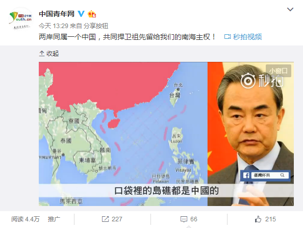 原标题:台湾青年发布短视频解读南海主权 引大陆青年微博转评赞
