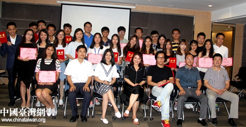 参加第二届“2016海外台湾留学生长三角研习营”的两岸大学生在江苏江苏昆山举行结营仪式。(中国台湾网记者 李杰 摄)