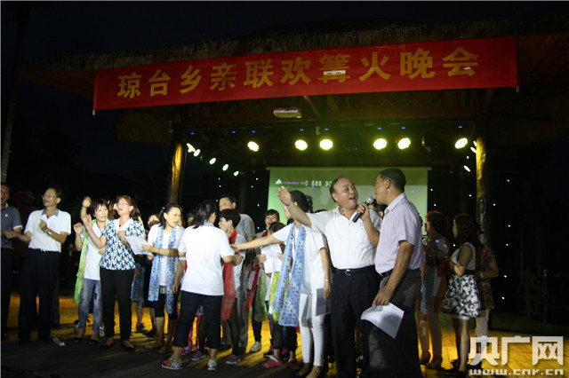 海南省台办主任刘耿在篝火晚会尾声致词时说:“家乡,就像是头顶上的天空,我们走到哪里,家乡就在哪里。家乡,就像是我们脚下的土地,我们走到哪里,就把我们的爱,奉献给我们的家乡……”