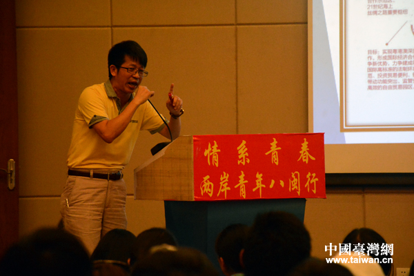 来台湾的导师刘汉良向两岸青年详解扶持政策及创业知识。(中国台湾网 吴怡 摄)