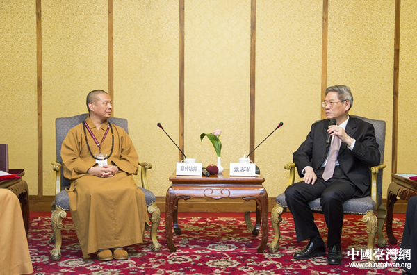 张志军会见由慧传法师率领的中华人间佛教联合总会参访团一行。(中国台湾网 图)