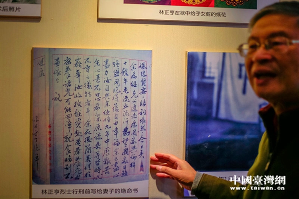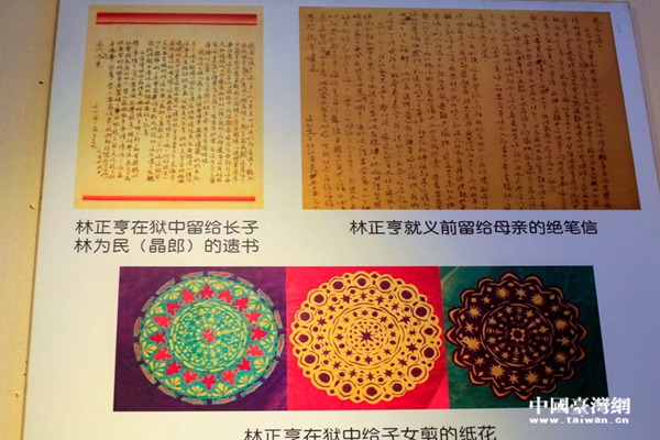 林正亨烈士亲笔书信、亲手剪的纸花。(中国台湾网 郭晓康 摄)