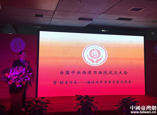 中国台湾网11月18日北京电(记者 齐昕) 11月18日上午,台盟中央两岸书画院成立仪式暨首届“翰墨传承”海峡两岸书画名家交流展在北京国家体育场文化中心举办。全国政协常委、台盟中央常务副主席黄志贤,全国政协常委、台盟中央两岸书画院院长梁国扬,全国政协常委、台盟中央副主席吴国祯,中华两岸文化艺术基金会会长庄汉生等嘉宾,及二十余位两岸书画家、著名企业家代表参加活动。