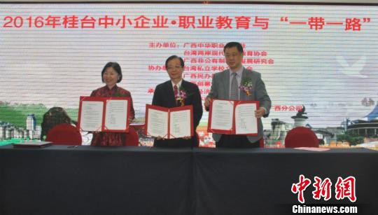 论坛中,广西民办教育协会与台湾私立学校文教协会、台湾环球科技大学等签署合作协议,决定共同培训职业技术人才,促进两岸中小企业合作交流与国际化。(记者 林浩)