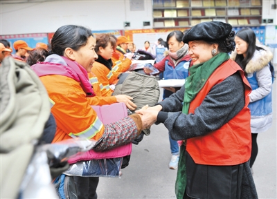 近日,四川绵阳微爱阳光义工联携手台湾同胞投资企业协会,为50名优秀环卫工发放了内有棉衣、裤子、围巾、手套、袜子等物的爱心大礼包。爱心大礼包是由定居绵阳的爱心人士台湾“林妈妈”及绵阳微爱阳光义工联志愿者和爱心人士共同募捐,其中棉背心、棉裤还是从上海定做后特地送到绵阳。