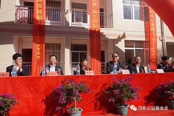2016年12月21日上午,古竹中学花团锦簇、彩旗飘扬,“顶新教师公寓”竣工剪彩仪式在这里隆重举行。顶新公益基金会理事长滕鸿年,永定区副区长詹萃芳,区台办主任吕杨兴,区直机关党工委常务副书记吴衍强,教育局副局长王彦铭,以及全体师生近500人参与了古竹顶新中学教师公寓启用仪式。 詹区长、赖书记均发表了热情洋溢的讲话,对顶新公益基金会的善举表示感谢与感恩。