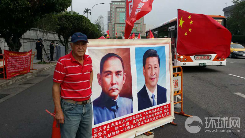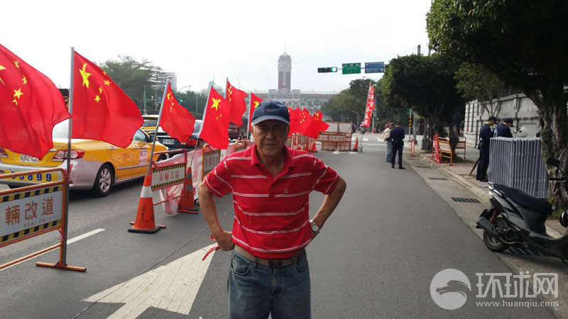 【环球时报-环球网报道 记者 吴薇】台湾“中华爱国同心会”自2014年10月开始,每月在台湾“总统府”前举行一次升五星红旗的仪式,到现在已 有28次。图为在台湾“总统府”前凯达格兰大道上升起的五星红旗。